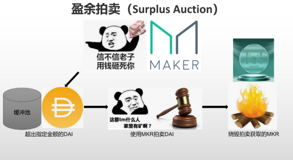 Maker 协议其实还有另外一套拍卖机制来确保 MKR 不会严重超发,那就是盈余拍卖(Surplus Auction)机制。