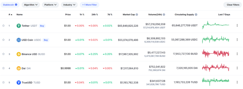 DAI:DAI 是一种在以太坊上的 MakerDAO 中通过超额抵押指定的资产铸造的超额抵押稳定币。