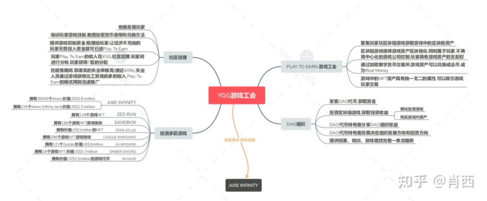 YGG DAO 还是许多知名链游(如:Axie Infinity)背后的推手,也是目前公认的头部 GameFi 领域的去中心化组织。YGG DAO 由许多 SubDAO 组成,它们以不同的方式(地区)为 YGG 做出贡献(SubDAO 概念也是由 YGG 引入);如果 DAO 未来真的适用于公司,这会给予许多大型企业启示。