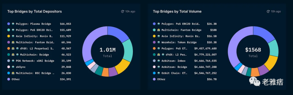 在写这篇文章的时候,像 dyDx 这样的独立 dapp 在他们的桥上已经有大约 5 万用户。像 Axie 或 Polygon 这样的链原生桥的这一数字则更高。累积起来,最大的桥大约有 1500 亿美元的资金流量。就规模而言,Uniswap 在其生命周期内已经有 1 万亿美元的资金流量。