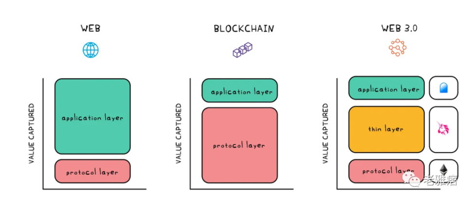 我最近一直在琢磨的一个概念是 web3 中的 Thin Layer。这是 Joel Monegro 在 2016 年写的著名文章的延伸。它认为,“协议的市值增长总是比构建在其之上的应用程序的综合价值增长得更快,因为应用层的成功推动了协议层的进一步投机”。这也是长期以来投资新兴层的指导原则。与其押注哪个应用将占主导地位,不如简单地投资于创始人将在其上构建的基础设施。