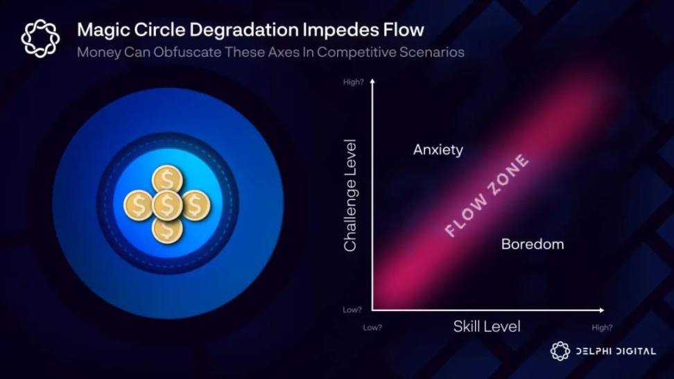 到目前为止,大多数游戏玩家讨厌加密货币已经不是什么秘密。我们目睹了社区对 Ubisoft Quartz 和 Dr DisRespect 的 Midnight Society 等的强烈反对。Asmongold、Josh Strife Hayes 等游戏评论员继续关注加密游戏赛道也是有着充分理由的。听到一家加密原生公司(指 Delphi Digital)承认这一点,你可能会感到惊讶,但我们了解这种情绪的来源,并相信这是有根据的。作为游戏玩家团队和最早的区块链游戏支持者,区块链游戏遭到否定让人有些措手不及。最初,我们认为这是人们不了解加密货币可以为游戏带来的好处。随着时间推移,我们也倾听并就此展开了许多辩论。经过多次讨论,我们相信浮出水面的许多批评都有理可依。不仅仅是加密游戏,更广泛地说,是随着时间的推移,游戏行业核心的变现方式和实践的演变。在这篇文章中,我们将分享见解和这些批评帮助形成的进化论。为我们在游戏行业中所处的位置提供历史背景,分享对加密技术进入竞技场的一些思考,并为我们认为加密在游戏中的位置构建几个模型。特别是,我们将探索由 Brooks Brown 和 NOR [1] 团队开发的名为 PlayFi 的新模型。强烈建议观看我们与 Brooks Brown 共同参与的 Disruptor’s Episode首播[2]。在其中许多原则的基础上构建了我们构建了本文的观点,并根据我们的经验进行了一些修改。首先,我们有必要缩小范围并开发一个高级框架来理解为什么人们会被游戏所吸引。让我们探索一下“魔法圈”的概念,它最早由 Johan Huizinga 在他 1938 年出版的《游戏玩家》(Homo Ludens)一书中率先提出,后来由 Katie Salen 和 Eric Zimmerman 在其 2003 年出版的《游戏规则:游戏基础》(Rule of Play: Fundamentals of Game Design)一书中在游戏背景下进行了扩展设计。“魔法圈”一词是指现实世界与游戏之间的假想边界。现实,往往带有不幸的包袱和限制,是许多人想要逃离的地方。游戏的魔法圈可以为他们提供这个避风港。由于人类想象力的非凡本质,在“魔法圈”内,看似平凡的行为可以呈现出非凡的形式。例如,将球踢入网的简单动作可以完全被改变。也许那个球进入球网实际上代表了世界杯决赛中的一个制胜球。突然间,数十亿人关心这一刻,这一刻具有重大而持久的意义。这里的不同之处在于它发生在一个“魔法圈”内,一个共同的幻觉,社会对此予以重视。我们在一篇关于电子游戏的帖子中使用了一个体育示例,这可能会让你感到奇怪,但它们的共同点远多于使它们与众不同的地方。早在人类历史上,体育运动一直是一种主要的娱乐媒介。其在全世界范围内都被认为是意义的重要来源,能够在全球范围内唤起巨大的热情和地方主义。运动受到尊重,因为人们了解真正出类拔萃所涉及的技能,通常是自己练习过这项运动。此外,它们经历了数千年的演变,以优化人们在游戏中真正享受和喜爱的内容。结果便是围绕游戏货币化(变现)的非常特殊的模型,我们将在后面进行探讨。回到“魔法圈”,它通常会引发一种心流——一种经过充分研究的心理现象,其范围远远超出游戏或运动。这是在高挑战和高技能的情况下出现的状态。如果成功地制作出引人入胜的魔法圈,玩家应该全神贯注于体验,以至于所有其他需求都变得微不足道。外部世界必然会消失在背景中。你很可能已经体验过那种“置身其中”的感觉。这就是许多人喜欢电子游戏的地方——游戏的真正含义。这是当前这一代电子游戏中万物开始崩溃的最后一点。在许多情况下,游戏并非不受外部干扰的阻碍。事实上,它已经与可以说是现实强加给人们的最大约束——金钱——纠缠在一起。我们认为,这是主流游戏玩家对加密货币的敌意的一大来源。部分传统游戏行业倾向于激进的货币化做法,这些做法有时会损害玩家的体验。因此,当游戏玩家看到需要购买 NFT 来玩早期的加密游戏,或者大型发行商宣布计划发展该领域时,他们会认为这是又一次“抢钱”行为并避而远之。上述问题在竞技多人游戏中最为明显,其中一些玩家因为他们为性能提升付费而击败其他玩家的能力而腐蚀真正的竞争。这些游戏通常被标记为“花钱来获胜”(P2W),并且理所当然地受到强烈反对。随着加密货币的出现,以及对游戏资产进行代币化和交易的能力,许多评论家担心区块链游戏将始终朝着这个方向发展。虽然这是一个有效观点,但我们认为这是一种一维观点,错过了加密货币可以增强游戏的许多绝佳机会。1)人们玩游戏是逃避现实的一种方式;心流(flow state)和真正的沉浸感增强了这一点2)基于技能的竞争可以成为使游戏有意义的重要驱动力3)当金钱影响核心游戏玩法时,它可能会破坏上述内容我们认为,游戏行业中针对加密游戏和传统游戏的许多批评都源于游戏的变现方式。在理想的世界中,人们可能会争辩说,要创造最身临其境的游戏体验,必须限制金钱对核心游戏玩法的影响。这并不是说所有形式的变现都是不好的,而是我们应该寻求以不损害核心游戏循环或真正的竞争玩法的方式进行变现。也不是说不能成为付费触及核心玩法的游戏,因为这类游戏肯定有受众。值得注意的是,这些不同的模型都属于变现方式的范围内,可以通过多种方式进行处理。与以往一样,没有万能的解决方案,在游戏设计的无限空间中总是存在细微差别。