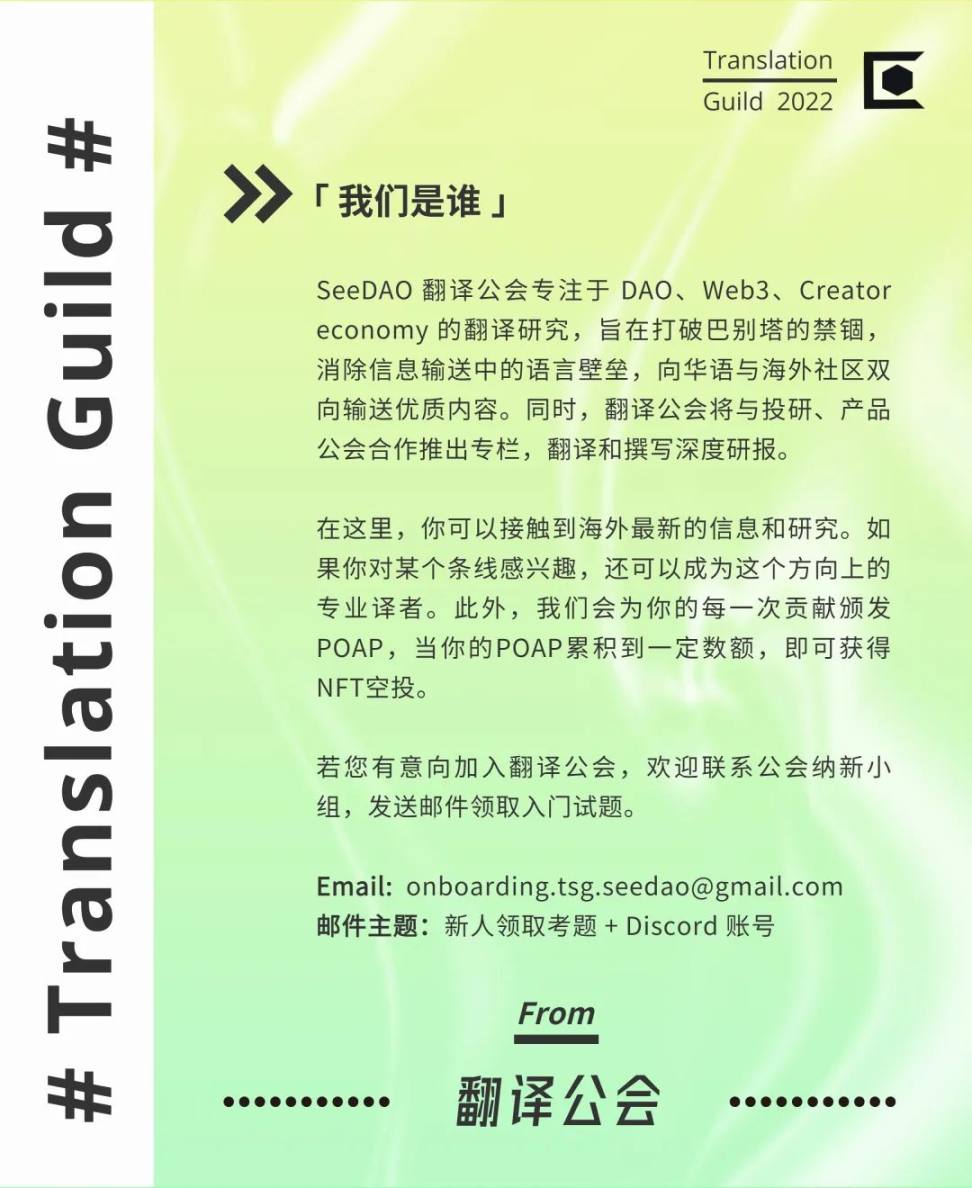 因此,虽然软件为合作治理的实验开辟了更多的设计空间,但我们也需要严谨地思考这些网络在面对日益复杂的情况时如何能够健壮。合作治理结构的历史——包括它们的成功和失败——对于那些建立新的网络和应用的人来说,可能产生一些有用的借鉴和灵感。这些网络毕竟是由人组成的,只是现在他们被加密技术、可编程货币、开放源代码、开放数据和让最好的想法获胜的市场赋予了更多的能力。