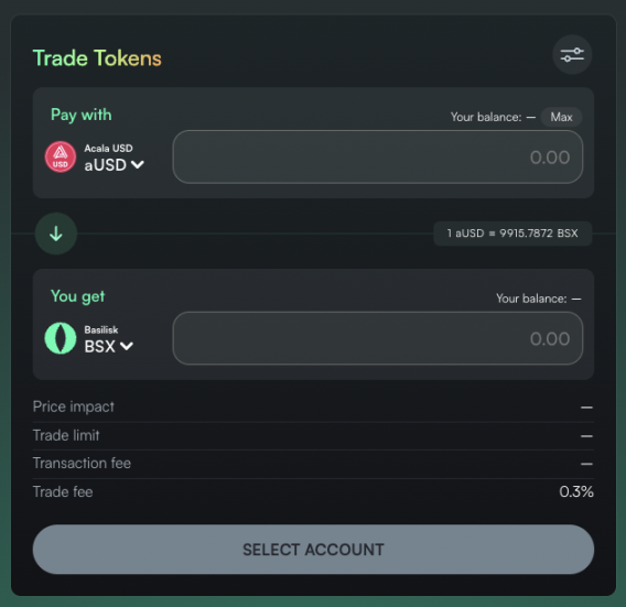 使用以下链接访问 Snek Swap 上的 KSM 和 aUSD: