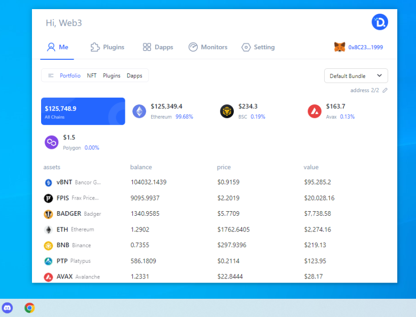 Also, Dtools provide a personal Portfolio. The personal portfolio allows users to aggregate and manage assets in multiple wallets and supports switching different chains to view the total assets on the corresponding chain (currently supported blockchains include: Ethereum, BNB Chain, Avalanche, Solana, Polygon, and Arweave). These matches Mask Networks’ plan.