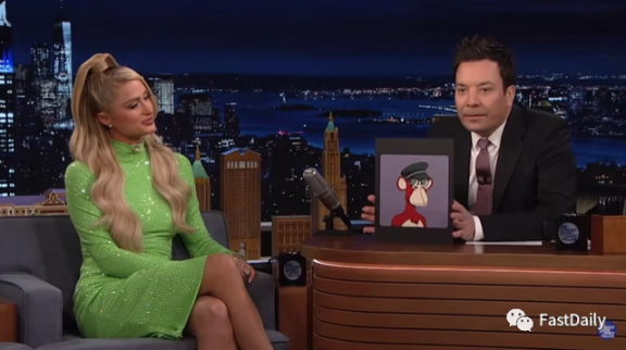 今天,无聊猿在流行文化中随处可见,从 Old Navy 出售的 T 恤到 Snoop Dogg 和 Eminem 拍摄的 VMA 提名音乐视频。像 Steph Curry、Justin Bieber、Gwyneth Paltrow、Post Malone 和 Seth Green 这样的名人都拥有无聊猿。其他高调的持有者包括 Jimmy Fallon 和 Paris Hilton,他们在今年 1 月份的 The Tonight Show 上就他们的猿猴进行了一次备受争议的交流。(Solano 和 Aronow 说他们事先并不知道 Fallon 的那段话,他们认为上节目讨论是「非常超现实的」。)