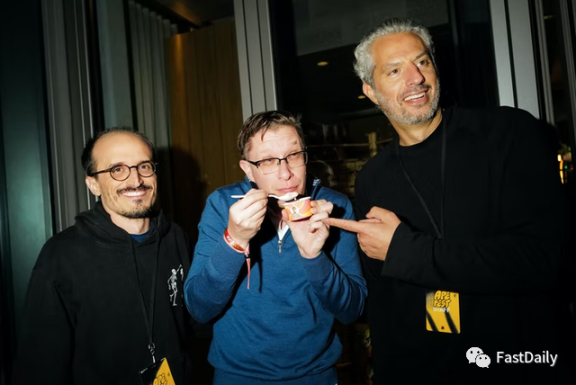在快速合影后,创始人的公关人员把他们送回了酒店。但有些人坚持留下来,所以我问他们见到创造 BAYC 的人是什么感觉。一个在 Twitter 上叫 Doris Burke 的年轻人说(「不是 ESPN 的播音员」,他的简历上写道):「这几乎是超现实的,因为他们只是,比如,普通人。」