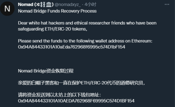 后来的资料显示,Moonbeam 网络没有问题,有问题的是跨链桥Nomad,筛查后发现 Nomad 存在严重漏洞,团队将可信根初始化为 0x00,它具有自动验证每条消息的副作用。因此黑客不需要动用 Merkle Trees,只要找到一个有效的交易,将地址替换并重新广播即可。简单来说就是由于团队的错误导致的一个巨大漏洞。在本次攻击中,可以算是 web3 最混乱的一次了,不同的黑客,不同的套利者哄抢资金,共有1251个 eth 地址参与,最终 1.9 亿美元资金池被抽干,41 个地址获利约 1.52 亿美元(占 80%),包括约 7 个 MEV 机器人(约 710 万美元)、Rari Capital 黑客(约 340 万美元)和 6 个白帽黑客(约 820 万美元),约 10% 的 ENS 域名地址获利 610 万美元。Nomad 发现事态挽救不回来之后发布公告称希望作为白帽黑客资金返还,并积极联系执法部门。