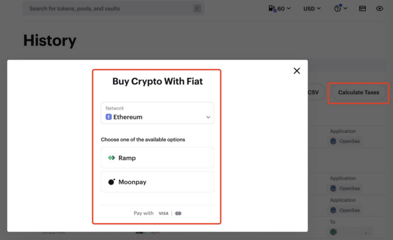 Zerion aims to build an application that provides users with a single place to build and manage their entire DeFi portfolio with easy operations. Although Zerion is similar to Zapper in asset tracking, it offers several unique functions. To begin with, Zerion comes with a built-in fiat deposit function backed by crypto payment providers including Ramp and Moonpay, which means that you can buy cryptos with credit cards on the Zerion website. This way, you will no longer have to go to a centralized exchange for deposits and withdrawals. In addition, Zerion has partnered up with TokenTax, a crypto tax software platform and also a crypto tax accounting firm, allowing users to visit TokenTax via Zerion and generate crypto audit reports for tax filing at a 10% discount. Moreover, you can also export your transaction records in CSV on Zerion. As for NFTs, Zerion calculates the value of your NFTs using the floor price or the most recent transaction price (switched with flexibility) and supports NFT transfers.
