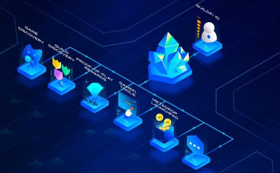 GuildFi (GF), the third key project incubated by Alpha Launchpad, is designed to interconnect games, NFTs, and ecosystems. GF brings players’ all achievements and rewards in the metaverse in one place for settlement. GF tracks player activity and establishes Proof-of-Play rewards, which analyze player activity in the game to provide desired rewards. Metadrop Launchpad issues NFTs and tokens according to the player’s ranking on GF. As an intermediary to connect all players, blockchain games, and gaming guilds, GF offers them a platform for mutual distribution and profit sharing. There is a fundamental difference between it and those operation-only guilds mentioned above.