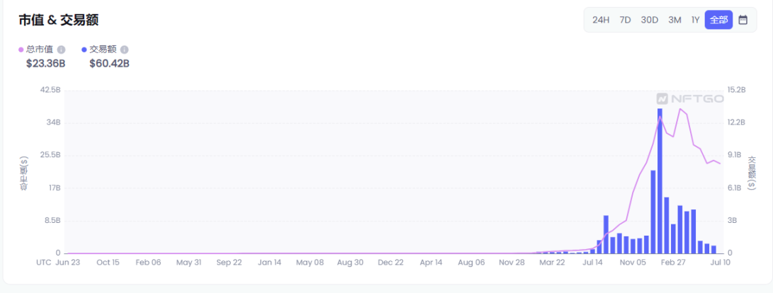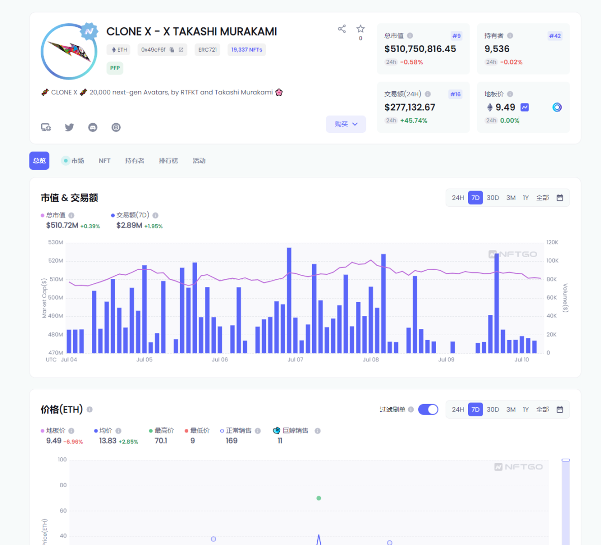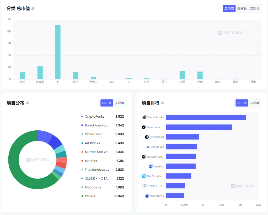 NFTGO 是我在进行产出内容、判断 NFT 市场时,经常参考的一个数据网站,NFTGO 对市场整体的数据统计较为全面且详细,虽然数据不一定是完全精准,但基本能够满足我们的趋势、市场现状判断需求。