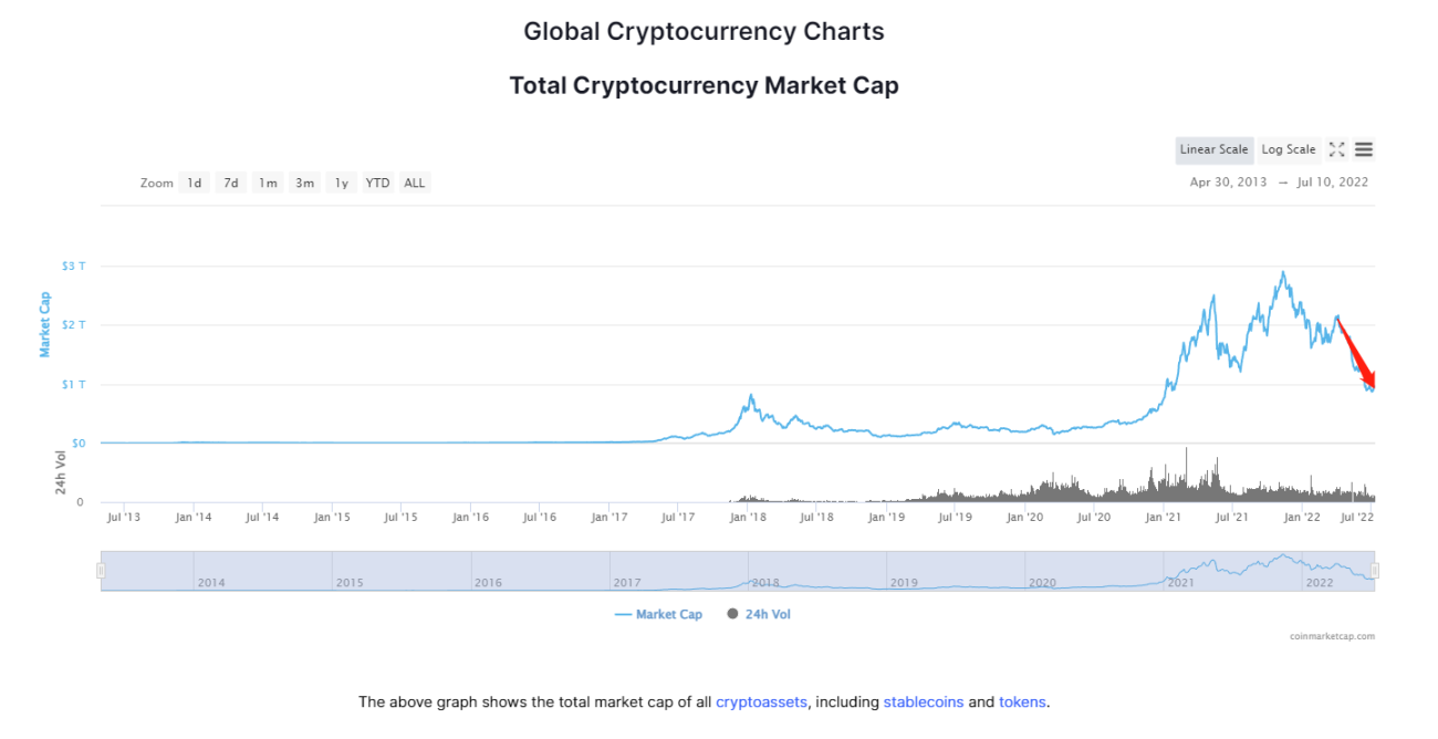 从今年的 4 月以来,市场逐渐的进入到下行阶段,最具代表性的信号就是从 4 月美联储加息后开始,加密货币总市值逐渐下跌,资金加速外逃。而在这个过程中,以 UST 脱锚为代表的超级利空事件,引发了市场的一系列反应(一些头部加密基金的破产、一些“财大气粗”的 CeFi 机构发生挤兑),市场全面转熊。
