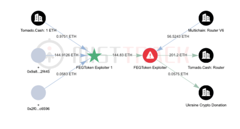 (FEGToken Exploiter 2 ETH 资金转移图)