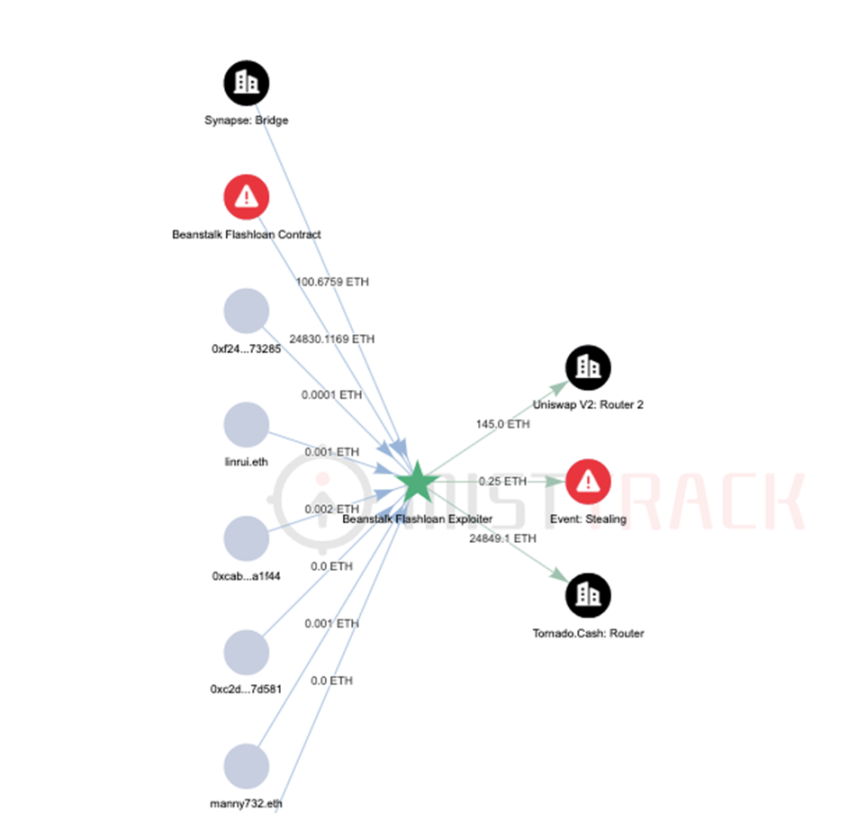 (Beanstalk FlashloanExploiter ETH 资金转移图)