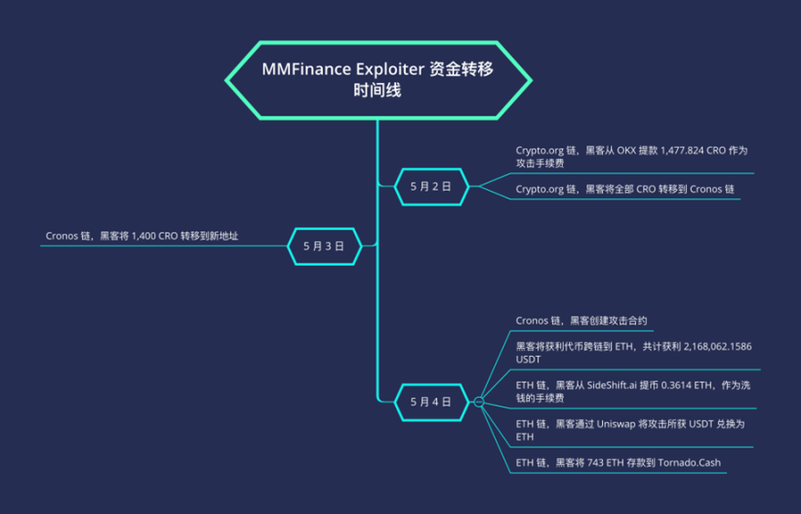 (MMFinance Exploiter 资金转移时间线)