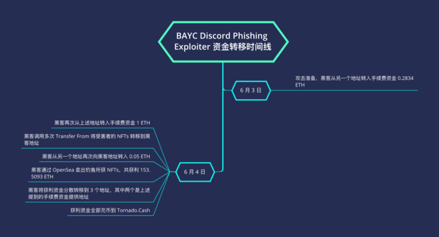 (BAYC Discord PhishingExploiter 资金转移时间线)