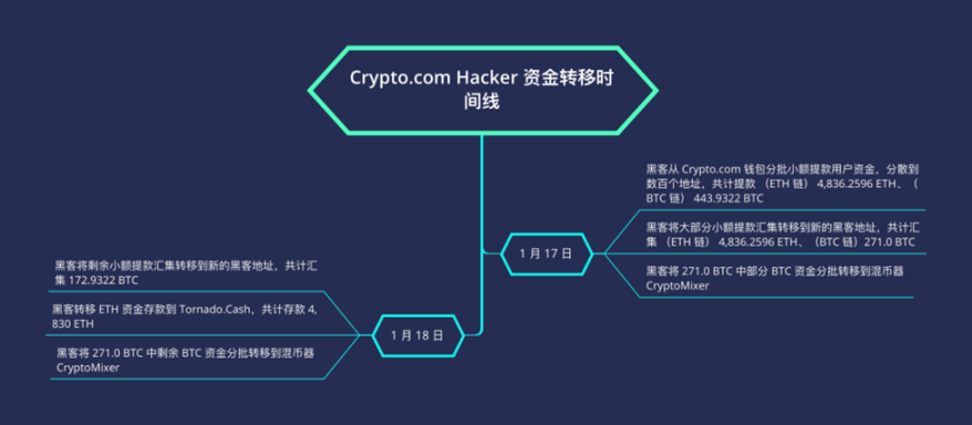 (Crypto.com Hacker 资金转移时间线)