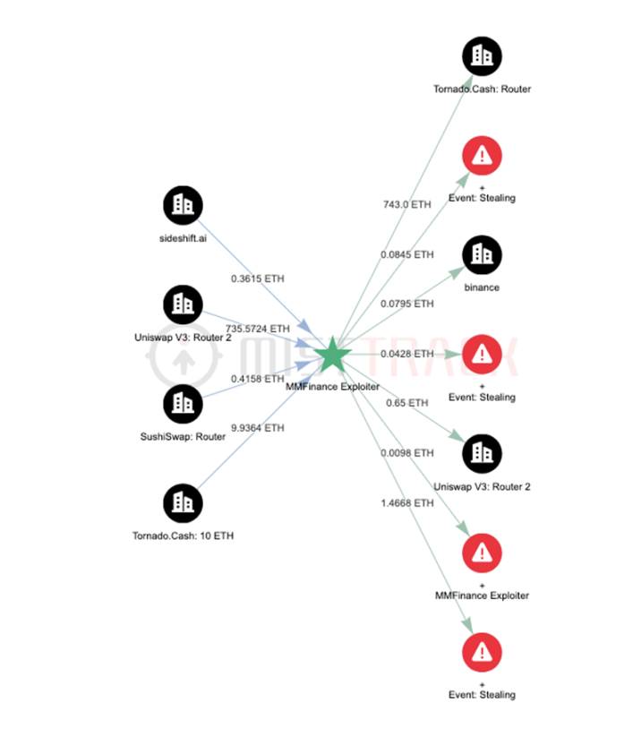 (MMFinance Exploiter ETH 资金转移图)
