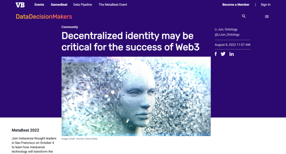 近日,美国知名科技媒体平台 VentureBeat 发表了本体创始人 Li Jun 署名文章。此篇文章基于 Web2 大背景的角度,剖析了去中心化身份(DID)将会为互联网带回信任的关键功能。本期就为大家带来该文章的汉化版。