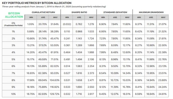 是的,与没有比特币的传统投资组合相比,在投资组合中平均分配 4% 的比特币可以限制你在压力最大的时期的收益回撤。 分析分配4% 给以太坊会导致类似的结果。