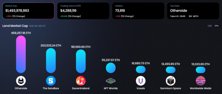 NFT Worlds 的团队近期可能正在休假,近几周这一项目都没有任何新的进展公布。其土地均价在本周跌至 0.76ETH。与此同时,土地市值也下滑了 5%,销量下降了 21.7%,交易量则下降了 26.3%。