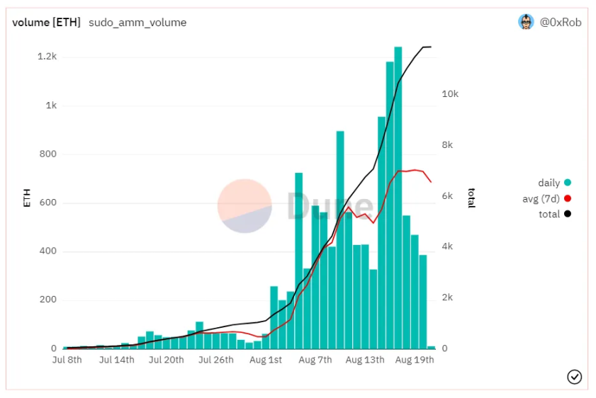 sudoAMM 迄今为止的交易量 - 0xRob 的 Dune 仪表板