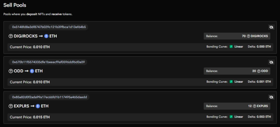 这意味着用户可以根据可预测的定价目标设置只买、只卖或买卖 NFT 池。例如,0xmons 在之前的一篇关于 sudoAMM 的博文中解释过: