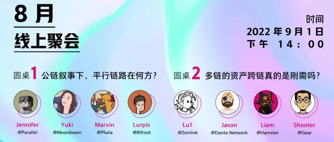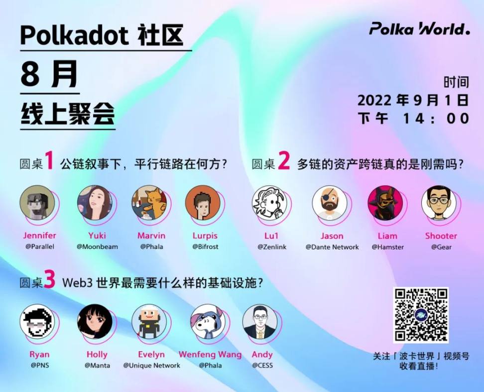 Hi,大家好!Gear 将于 9.1 下午 2:00 参与由 PolkaWorld 社区举办的 Polkadot 社区线上聚会。8 月大理之行,因疫情防控取消的波卡营地活动可谓是一个不得已的遗憾。然而,峰回路转,PolkaWorld 联合波卡生态中优质项目方共同开启精彩绝伦的线上圆桌讨论!三大热门话题同时进行,Dalifornia 仍在继续。9 月 1 日 下午 2:00,一起约起来,线上爬 Web 山,线上逛波卡营地!