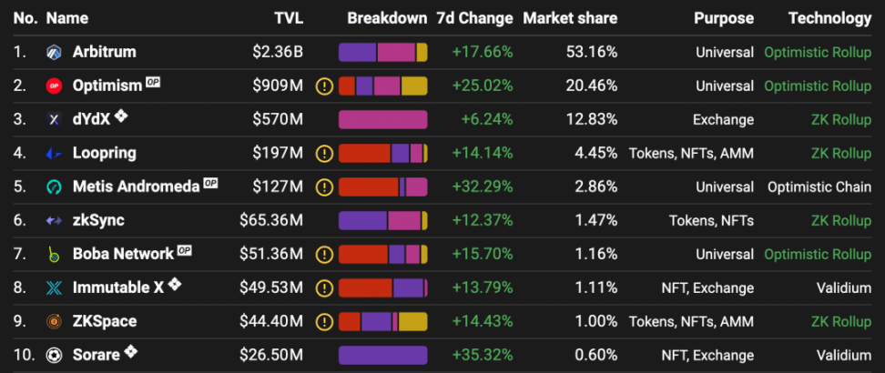 目前,普遍的观点是Optimistic Rollups已经证明是一个可行且功能齐全的解决方案,市场的聪明从侧面反映了这样的结论,L2 top 10 中虽然只有3 家采用 Optimistic,但市值却占到75%。