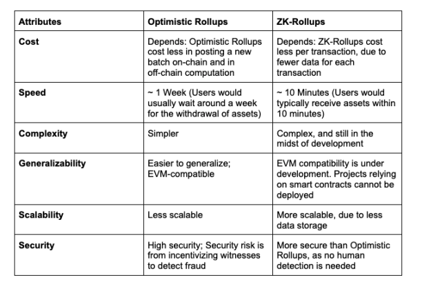 与 ZK Rollups 相比,Optimistic Rollups 向 L1 提交Rollup 的固定成本更低(随着活动的增加,交易数据如果成为Rollup费用的最大边际成本,这种情况可能会发生变化);