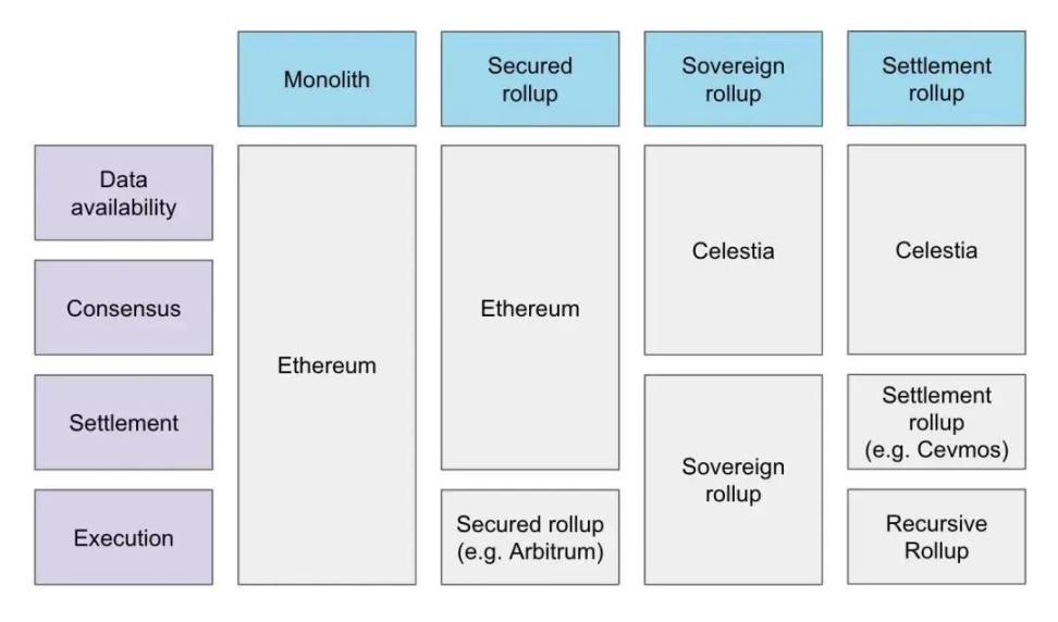以太坊也并不是唯一以 Rollup 为中心路线的 L1 ,Tezos、NEAR 和 Celestia 是已经转向了某种以 Rollup 为导向的区块链。