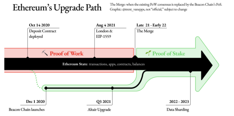 即将而来的 Merge 将会对以太坊产生深远影响,PoS代替 PoW 预计将大大降低网络能源消耗,提升去中心化和安全水平;