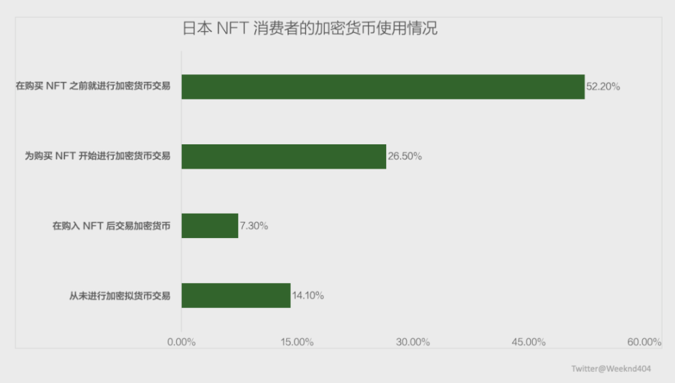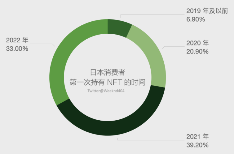 近半数的用户是因为购买 NFT 才正式接触加密圈,也验证了前文的说法:NFT 作为商品属性较高的投资选择之一,也便得到了越来越多的日本用户的重视。