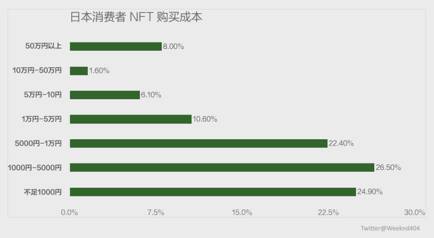 购买环节中,日本国内运营商是占有绝对领先地位的,这也进一步验证了本系列文章第一篇中提到的日本国民对于英语的心理障碍强烈,倾向于本土化项目。6、NFT 购买成本