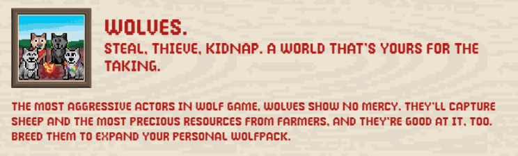 玩家有10%的几率铸造一只“狼”,每只“狼”都有独特的特征,包括5到8的Alpha值。 Alpha值越高,意味着“狼”从税收中赚取WOOL数量越多,偷走新铸造的“羊”或“狼”的几率更高。