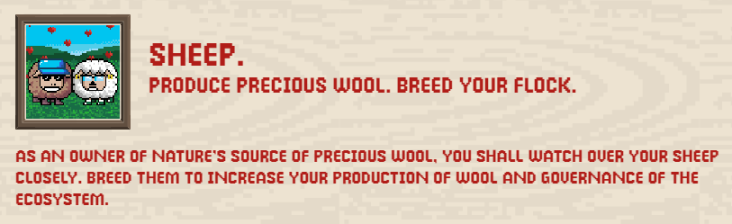 铸造“羊”后可以质押在谷仓里赚取WOOL并在获得WOOL时缴纳税款,如果“羊”处于未质押状态,“狼”会试图偷走它所有积累的WOOL。