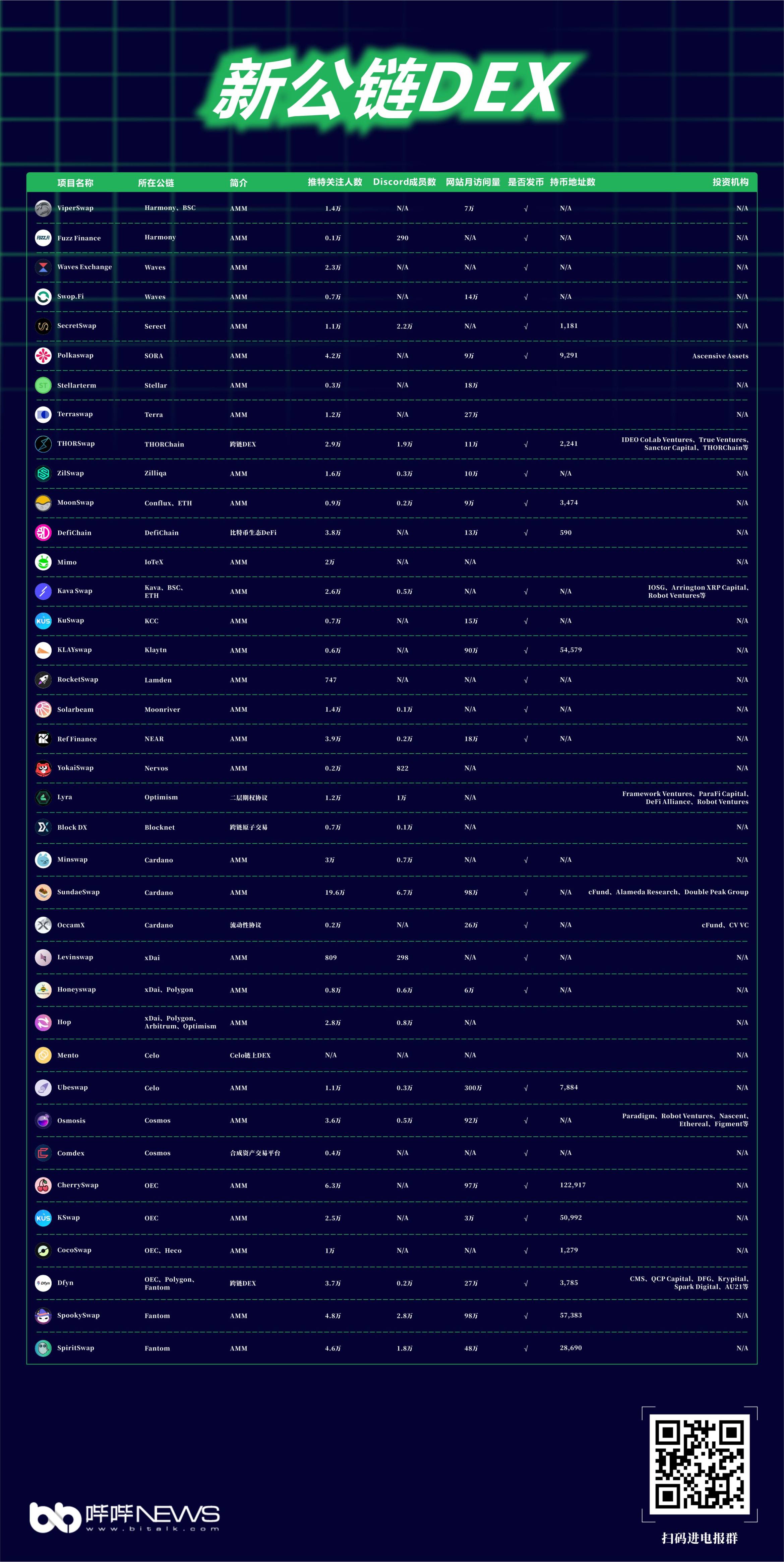 本文整理了Solana、Polygon、Avalanche等公链生态中的DEX,其中有4家DEX值得期待。