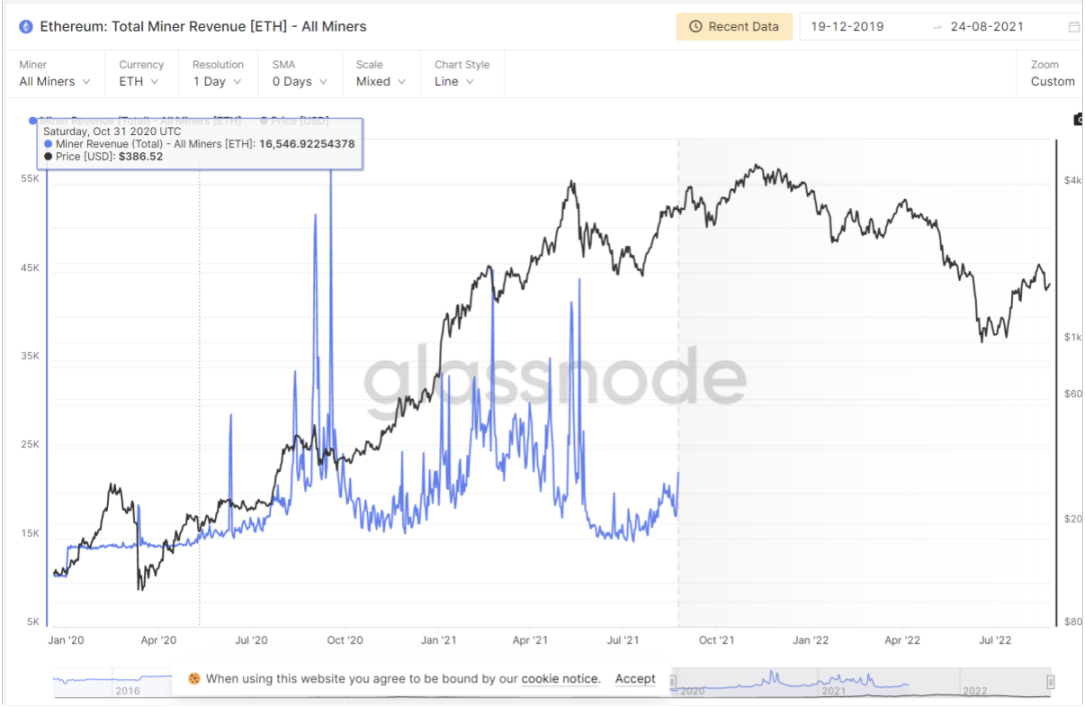 一直以来大量的挖矿收益被矿工获取,以太坊 2022 年 7 月矿工总收入达到了 5.96 亿美元,按照这一数据估算,大约年收入约为 70 亿美元(2021 年达 180 亿美元)。按照 2021 年的数据,ETH 挖矿收益中,电费成本大约占到 33%,矿机成本占到 10%,对应 2021 年和 2022 年 77 亿美元和 35 亿美元的成本。