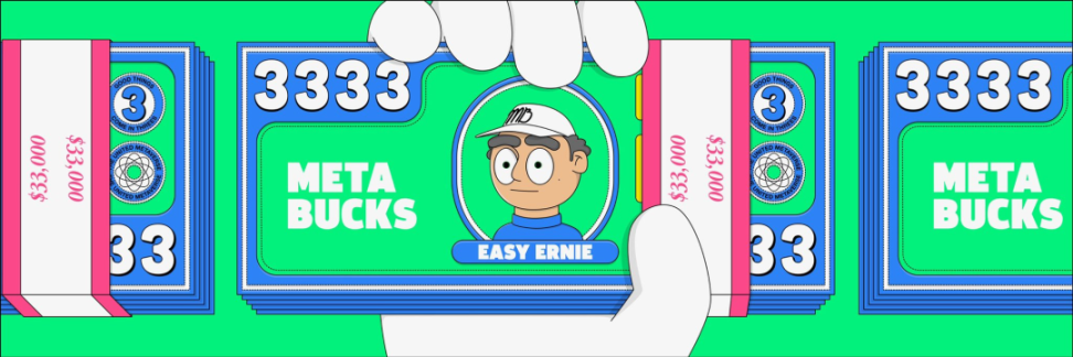 Meta Bucks 设计的 Banner 是以钞票为背景,在钞票的印花上有不同的人物来区分,它最大的特点是一个动态 Banner,可以用在 Discord 里的个人主页上,但目前 Twitter 还并不支持动态 Banner。