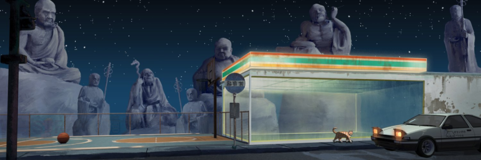 MidnightBreeze 属于蒸汽波艺术作品,作者将加油站、霓虹灯、旷野融合,加油站系列暗示着资本主义破坏了我们的环境,资本主义提出自己是解决一切问题的最终解决方案,但事实表明并非如此。作者通过这一系列作品来讽刺「经济繁荣高于人民的福祉」的现象。
