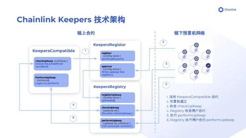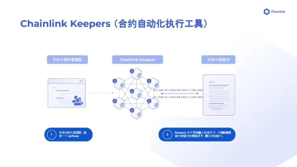 Chainlink Keepers 是的一个去中心化合约执行服务,可以实现链上合约的自动化执行。