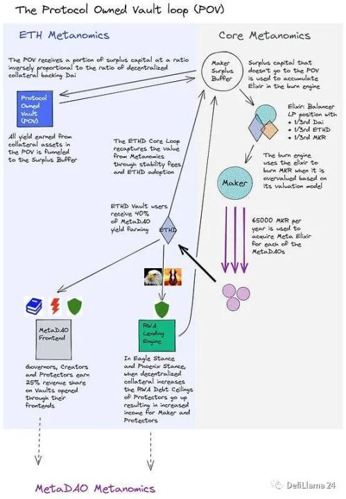 Maker 将开始以编程方式积累 $ETH 和 $ETH 衍生品,作为盈余缓冲区的一部分。从概念上讲,盈余缓冲将从类似于现金的缓冲以防止意外损失(与传统银行的普通股一级资本的概念一致)到某种 DAO 拥有的对冲具有收益率和波动性的基金。然后,其目的是以这种方式再投资使用 PSM 中的美元产生的大部分收益。我很清楚,从提供利用 $ETH 和 $BTC 的能力的无需许可的智能合约集转变为使用 $DAI 稳定币产品来汇总价值的类似 Fei 的协议控制基金。更具体地说,POVE 将: