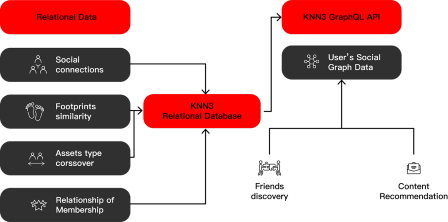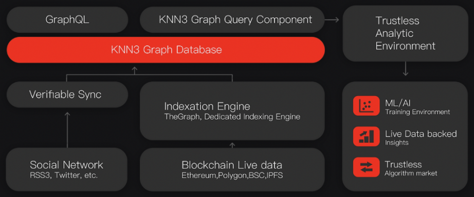 As a Web3 d/App builder, you can seamlessly retrieve abundant Web3 users’ relationships with KNN3 high-performance GraphQL. KNN3 Network collects a variety of relations through users’ historical behaviors and status, which is fully backed by live blockchains. As a Web3 analyst, you can fulfill structural query & relational queries in one place. KNN3 provides SQL-style graph query components for any SQL-compatible BI/analytics platform to integrate the current query service. Moreover, algo Developers can build & train the AI/ML algorithm with graph computation environment solutions.