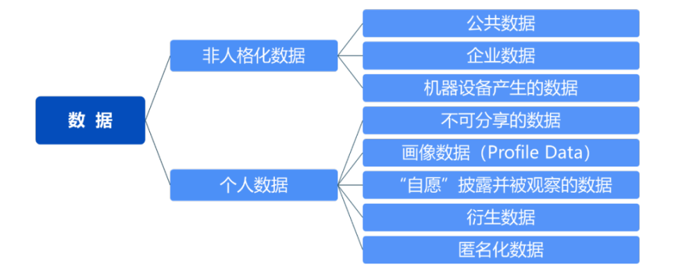 在元宇宙中,人、机构和智能设备等都有相应的数字身份,他们在数字空间中的行为和互动都伴随着数据的产生(图 3)。数据分为个人数据和非人格化数据。个人数据中最受关注的是“自愿”披露并被观察的数据,也就是个人为享受信息服务而“自愿”披露并被信息服务平台观察和记录的数据。这类数据是理解 Web 2.0 商业模式的关键。匿名化数据的使用近期也非常受关注。