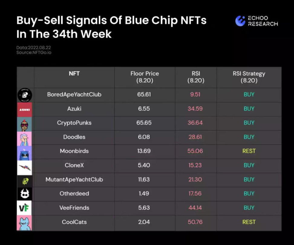 以及最近 NFT 和 Sport 的联动也多了很多,今年十一月份会有世界杯,大家要保持敏锐的观察。还有一类也是我自己的感受,参加很多 Space 以及和项目方的沟通之后,大家在前阵子经过 CC0 和版税等事情后、当前这股风又吹到了 Social Media 和 DID 上。大家具体的可以看下 Echoo 的订阅周报,包含:市场解读、指标信号、热门项目、巨鲸动向、NFT 打新、行业走向、每日蓝筹买卖信号、消息精选、定制化指标等多块内容。