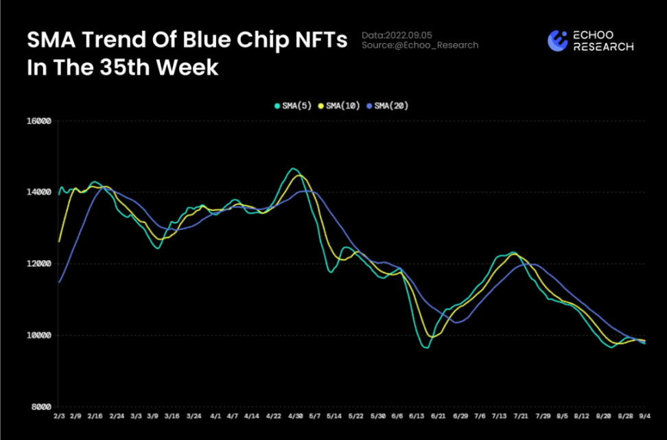 其他数据像蓝筹指数在上上周已经跌破了今年历史价格新低,但在本周有个小幅的反弹,比较明显的像 Azuki、Coolcats、Doodles,这是消息和新闻层面导致的反弹。
