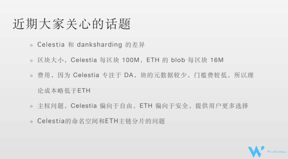 下文介绍包括 Celestia 工作流程、与 Danksharding 对比、近期大家关心的话题、Mamaki 测试网的现状、Optimint、Celestia 应用方式、系统的验证、Celestia 的费用、社区解答等环节。