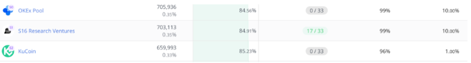 火币 pool 目前有两个节点在 175 个节点以内,一个是排 109 名,另外一个是 118 名。
