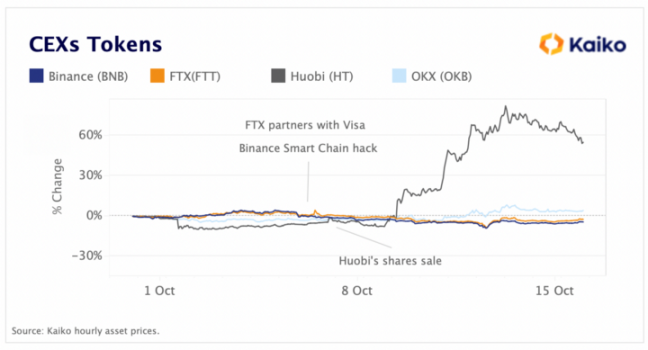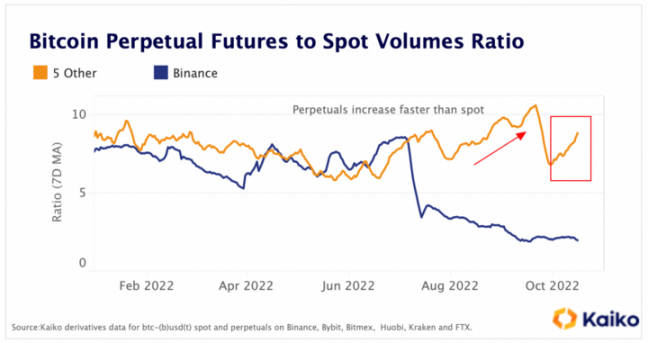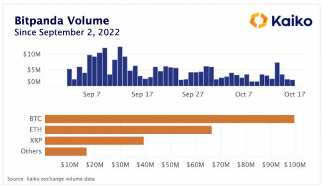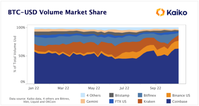 价格走势:继美国通胀热之后,比特币跌至 2020 年以来的最低水平,但之后进入温和复苏阶段。市场流动性:Coinbase 重新夺回占主导地位的 BTC-USD 市场份额。宏观趋势:10 月份比特币的 20 天波动率与纳斯达克持平。上周,当 CoinDesk 报告称,根据 DappRadar 的统计数据,Decentraland (MANA) 每天只有 38 个活跃用户,而沙盒 (SAND) 有 522 个每日活跃用户时,元宇宙受到了不必要的关注。然而,这些数字一直存在争议,因为 DappRadar 把活跃用户定义为那些与智能合约交互的人,错过了那些没有进行交易就登录的人。Decentraland 的代表表示,该平台每天有大约 8,000 名活跃用户。基于区块链的元宇宙的乏力在交易量中体现的很明显,因为上个月是 AXS、SAND、MANA 和 ENJ 的 CEX 交易量最低,合计仅占每日 BTC 交易量的 1% 左右。然而,尽管交易量处于历史低位,但流动性通常与市值相似的代币相似。根据 CoinGecko 的数据,SAND、MANA 和 AXS 是市值最大的 46、47 和 48 个代币,在撰写本文时被 AAVE 和 XTZ 夹在 45 和 49 之间;ENJ 是第 92 位。流动性指标,在本例中是 Binance、Coinbase 和 OKX 上所有代币的 USD、USDT 和 BUSD 对的 1% 市场深度之和,表明 AAVE 的流动性最好,其次是 SAND 和 MANA,而 AXS 的低于 XTZ 的。ENJ 的市场深度要低得多,尽管这是可以预期的较小的代币。有趣的是,Binance Lab 是 Sandbox 的投资者,当币安从该指标中移除时,SAND 的流动性与 AXS 相似,约为 MANA 和 AAVE 的一半。上周,在美国核心消费者价格通胀(不包括食品和能源成本)触及 40 年高位后,股票和加密市场的波动性飙升,将美联储最终利率的预期推高至近 5%。比特币在发布后最初跌破 18,000 美元——这是自 2020 年 12 月以来的最低水平——随后在几个小时内实现了 8% 的可观复苏,因为市场纠正了现在看起来像是被过度抛售的情况。BTC 的重要的 2 万美元水平现在正在等待,如果突破,可能会导致以太坊也走高。在其他行业新闻中,谷歌云将在 2023 年让用户通过 Coinbase 使用比特币、以太币和狗狗币进行支付。全球最大的托管银行——纽约梅隆银行为投资公司推出了 BTC 和 ETH 托管服务。与此同时,Solana DeFi 交易平台 Mango Markets 通过抵押品操纵遭受了 1 亿美元的攻击。自 10 月初以来,火币的实用型代币 HT 飙升了 50% 以上,明显优于其他中心化交易所代币。在火币的创始人同意出售他的控股权后,HT 获得了关注,因为该代币自 7 月以来大多表现不佳。本月到目前为止,OKX 的代币 OKB 一直是表现第二好的,上涨了 3%。虽然中心化交易所代币的价值可以作为衡量交易所竞争健康状况的情绪指标,但有趣的是,BNB 代币的表现几乎没有受到上周币安智能链上 1 亿美元黑客攻击的影响。在成立的五年中,Binance 已经树立了在监管方面比较宽松的声誉。CEO 赵长鹏(CZ)经常被问到交易所的总部在哪里,但一直没有回答;今年 7 月,他表示将“在适当的时候”公布答案。在同一次采访中,他承认从简单的观察中可以清楚地看出:随着世界各国政府越来越关注加密货币,Binance 必须与监管机构更加合作。Binance 现在在阿布扎比、巴林、迪拜和巴黎设有办事处,并在美国设有受监管实体 Binance.US。该交易所还在世界各地寻求注册,最近成为新西兰的注册金融服务提供商。另一方面,Coinbase 长期以来一直专注于监管批准,最近以新加坡金融管理局的许可证形式获得了回报。众所周知,加密实体很难在新加坡获得许可证,币安去年撤回了其申请。随着外汇市场动荡蔓延到加密货币,比特币的法币溢价 / 折价在过去一个月表现出异常高的波动性。法币溢价或折扣是按照当地货币的 BTC 价格之间的差价计算的,使用货币的小时汇率转换为美元。折扣可能因外汇汇率变动、当地加密货币需求和监管而异。9 月,BTC 在英国市场的溢价 / 折价幅度在 +/-0.1% 之间,而在日本市场的溢价 / 折价幅度在 0.2% 到 -0.2% 之间。由于英镑(GBP)和日元(JPY)兑美元均跌至历史低点,促使央行采取数十亿美元的干预措施,英镑 / 美元和日元 / 美元的波动性达到 2020 年 3 月以来的最高水平。然而,随着美国通胀猖獗和美联储强硬派继续推动美元走强,这些干预措施大多效率低下。美元 / 日元上周收于 148.74,创 30 年低点,远高于日本央行 9 月干预水平 145.7。Coinbase 重新夺回占主导地位的 BTC-USD 市场份额在夏季将市场份额输给其他交易所后,Coinbase 重申了其在美元交易量中的主导地位,现在占据了交易所 BTC-USD 货币对现货交易量的 63%。由于 Binance.US 取消了 BTC 对的费用并变得更具竞争力,Coinbase 的市场份额在 7 月份跌至 44%,夏季市场份额从 3% 上升至 12%。有趣的是,Bitfinex 在上个月受到 Coinbase 市场份额增加的影响,从上个月的 16% 下降到今天的 4%。上周,Kaiko 扩大了其交易所覆盖范围,包括奥地利集中式交易所 Bitpanda,该交易所于 2021 年 3 月在 B 轮融资中筹集了 1.7 亿美元(成为该国第一只独角兽),五个月后以 41 亿美元的估值筹集了 2.63 亿美元。作为参考,Binance.US 今年早些时候以 45 亿美元的估值筹集了资金,日交易量约为 1 亿美元。如上图所示,Bitpanda 10 月份的日交易量仅超过 500 万美元,而自 9 月初以来,BTC 的总交易量略低于 1 亿美元。在同一时间段内,ETH 和 XRP 的总交易量约为 1 亿美元,而其他山寨币的总交易量为 1700 万美元。从每小时的交易量分布来看,Bitpanda 显然是一家欧洲交易所。对于 BTC,Bitpanda 50% 的交易量来自欧洲交易