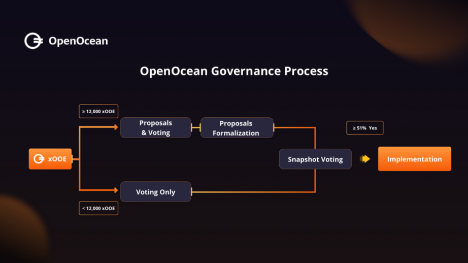 The DAO platform will seek to democratize power and allow the community to have their say. For the proposals and voting, we will only allow OOE stakers (xOOE holders) to participate and further decision-making of OpenOcean DAO initiatives. The DAO will be focused on building to ensure the success of the platform and empowering the community.